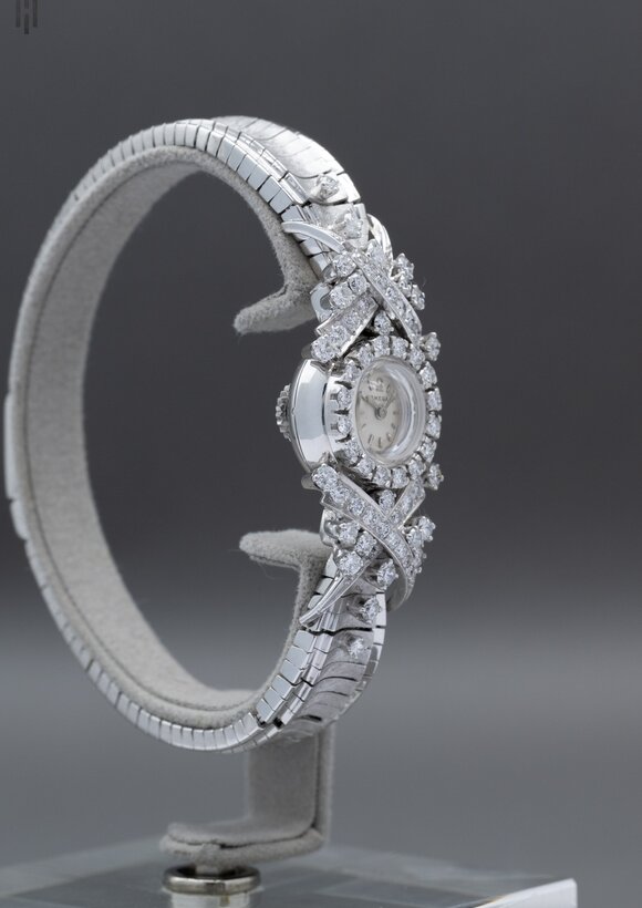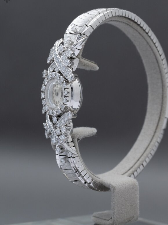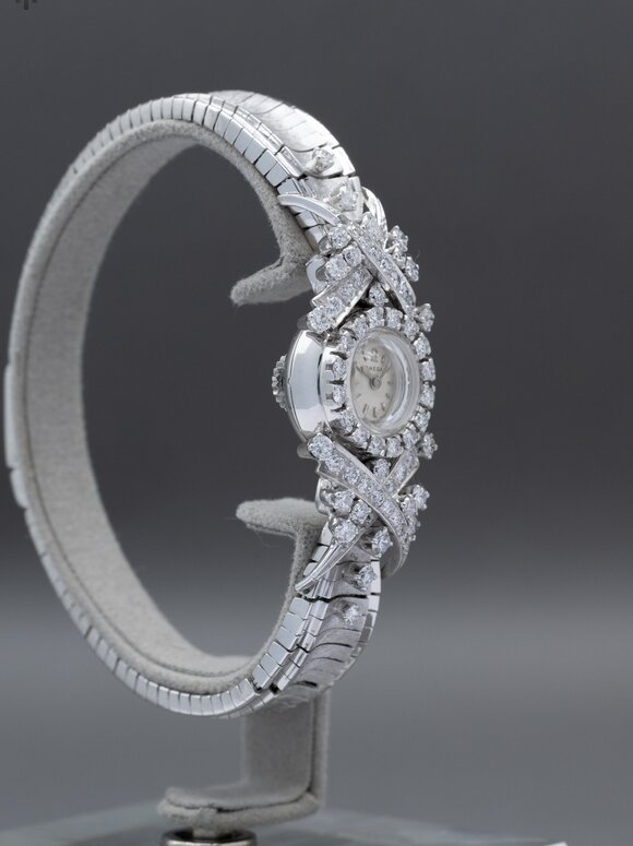 Delicate, filigree, and opulently adorned – the bezel of this ladies' jewelry watch is framed by a veritable sea of sparkling diamonds, which have been artfully set by hand. The delicate, crossed lines of the design are reminiscent of an ornate piece of jewelry from the Belle Époque and make this watch a real eye-catcher on the wrist of the style-conscious lady.