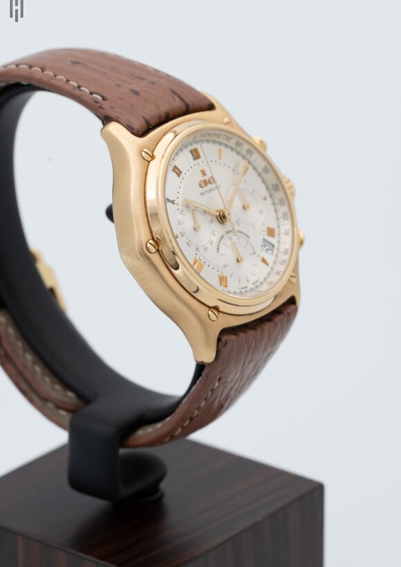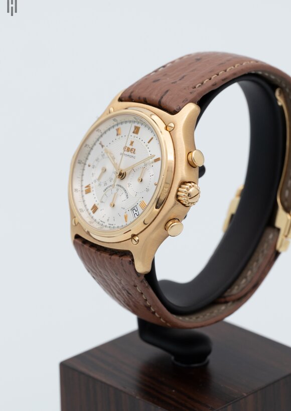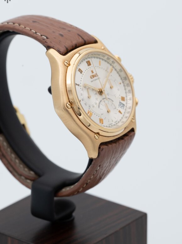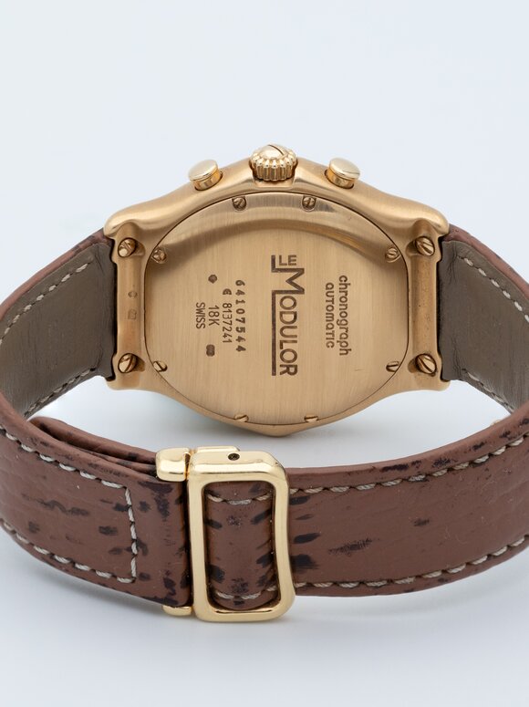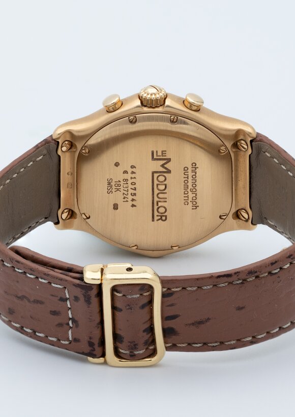 The LE MODULOR chronograph, successor to the 1911 line, has grown slightly in size. The unmistakable EBEL features have been retained and stylishly transported into the 21st century. The Lemania base movement, which was taken over by Ebel and continues to be manufactured under the name Calibre 137, stands for robustness and reliability.